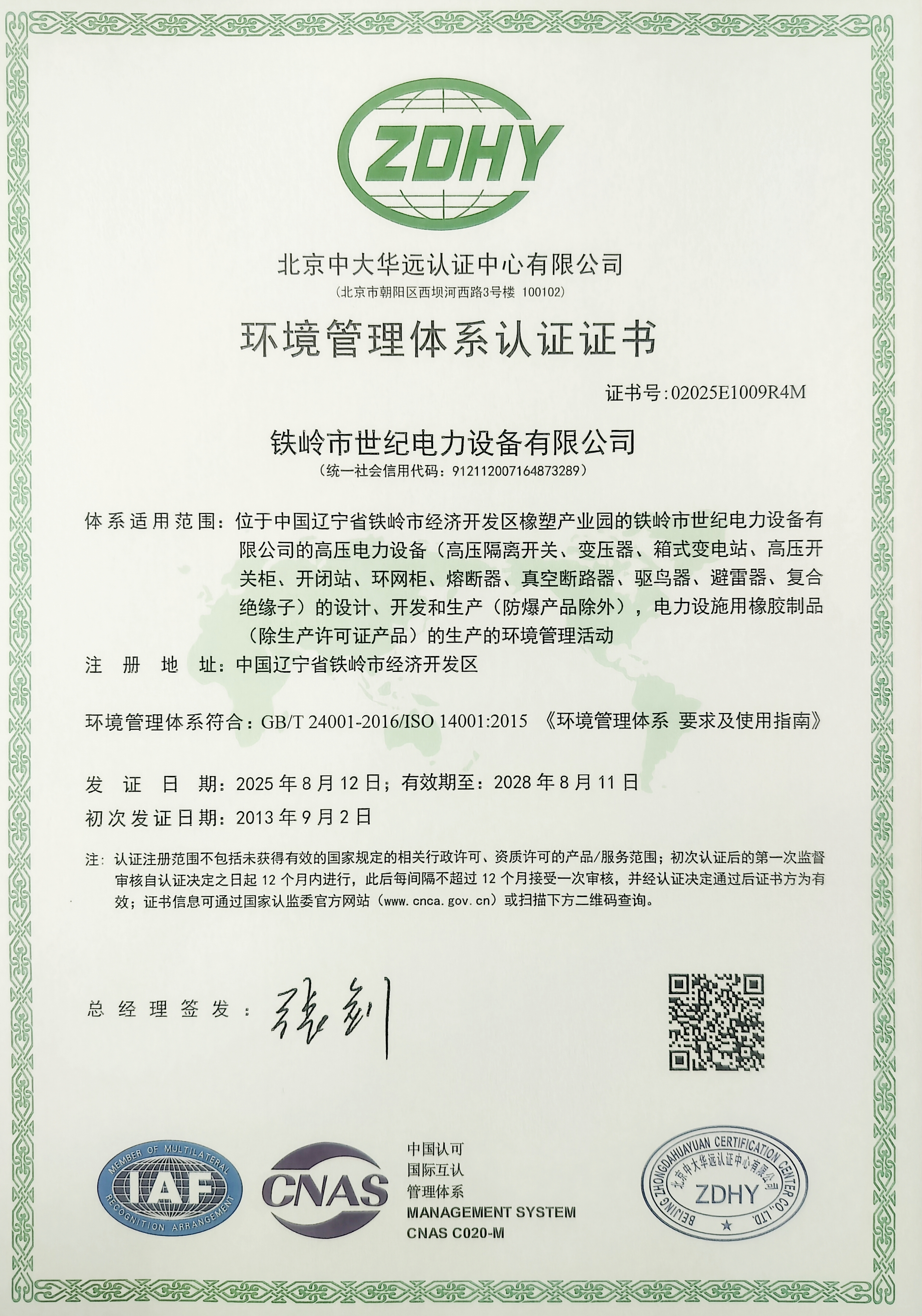 鐵嶺市世紀電力設備有限公司是集科研開發、生產制造、用戶服務于一體的國家高新技術企業,始建于1999年,位于鐵嶺經濟開發區,占地面積5萬余平方米,建筑面積2萬余平方米。主要從事國家電網配套戶外高低壓隔離開關、電力電纜、變壓器成套裝置、高低壓開關柜、箱式變電站、絕緣子等產品的研發、生產和銷售。公司現有國家發明專利6項、實用新型專利9項,公司通過了ISO9001國際質量管理體系認證、ISO14001環境管理體系認證和ISO 45001職業健康安全體系認證。